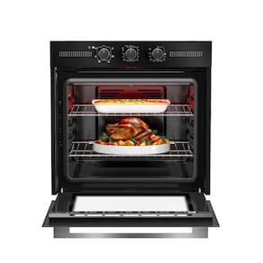 Forno elétrico de embutir com capacidade de 70 litros, potência de 2800W, painel de controle mecânico, temperatura ajustável de 75°C a 250°C, 7 funções de cocção (assar, grill, turbo, fryer, manter aquecido, descongelar, timer com desligamento automático), iluminação interna, revestimento interno Esmalte Easy Clean, design moderno em preto com frente em vidro duplo.Timer