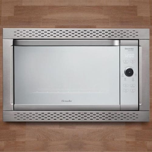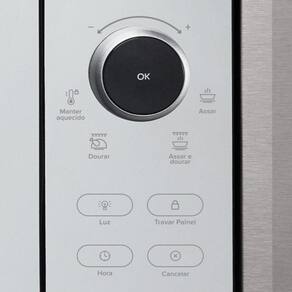 Forno elétrico digital de embutir Mueller Decorato Gourmet Inox com capacidade de 44 litros, timer dupla função, interior autolimpante, porta com vidro duplo e controle touch digital.Timer