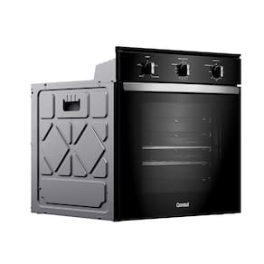 Forno elétrico de embutir com design moderno em preto, acabamentos metálicos e revestimento esmaltado que facilita a limpeza. Possui alta capacidade de 84 litros, 2 prateleiras com 5 níveis de altura ajustáveis, timer com desligamento automático e grill elétrico.Timer