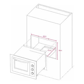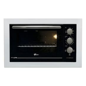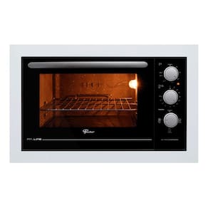 Forno Elétrico de Embutir Fischer Fit Line 48L com timer de até 120 minutos, controle de temperatura de 50°C a 320°C, corpo autolimpante, porta com vidro duplo, isolamento térmico total e bandeja para resíduos removível.Timer