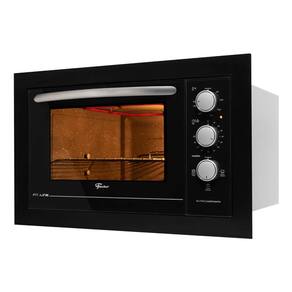 Forno elétrico de embutir com 48 litros de capacidade, grill integrado, timer programável e acabamento em preto.Timer