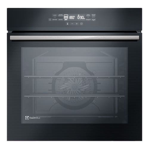 Forno elétrico de embutir Electrolux 80L com FoodSensor, ideal para monitorar o cozimento dos alimentos de maneira precisa e automática. Possui funções pré-programadas como grill, turbo convecção e descongelamento.Timer