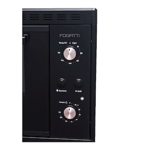 Forno elétrico de embutir Fogatti ESP Black com capacidade de 45 litros, timer de 120 minutos, termostato até 300°C, interior autolimpante e grill/dourador.Timer