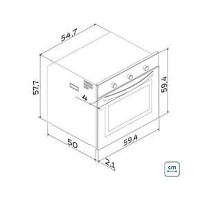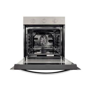 Forno elétrico de embutir com 7 funções, acabamento em aço inox e capacidade de 73 litros. Possui comando mecânico, ventilação interna, sistema de resfriamento e timer com desligamento automático. Inclui 1 lâmpada interna e 3 vidros na porta.Timer