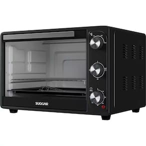 O Forno Elétrico Suggar FE50 traz praticidade para você preparar pratos deliciosos! Com capacidade para 50 litros, prepare pratos deliciosos para aquele almoço de domingo tamanho família ou mesmo uma noite de pizza com os amigos. Contando com a função grill, doure e gratine suas receitas na medida ideal, deixando-os mais corados e crocantes e garantindo um toque especial nas receitas; Além de possuir um timer de 60 minutos com alarme, para que não seja necessário você ficar vigiando a todo momento se está assado ou não, e ao final do tempo selecionado o forno desligará automaticamente e uma campainha irá tocar.
