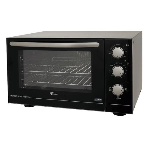 Forno elétrico de bancada com tecnologia turbo para cozimento uniforme e mais rápido. Possui 3 funções: Grill/Dourador, Air Convection Turbo e Air Fryer. Controle de temperatura ajustável de 50°C a 300°C. Interior easy clean para facilitar a limpeza. Porta com vidro duplo e isolamento térmico para maior segurança. Puxador de alumínio escovado e corpo externo em aço pintado.Forno autolimpante