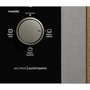 Forno Elétrico Fischer Fit Line de Embutir com capacidade de 48 litros, controle automático de temperatura, timer de até 2 horas com aviso sonoro, corpo interno autolimpante, isolamento térmico total e porta com vidro duplo.Timer