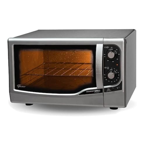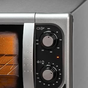 Tenha na sua casa um forno funcional e prático, com acabamento interno autolimpante, grade cromada e bandeja de resíduos esmaltada! Com iluminação interna e opção de ligar as resistências separadamente, você pode escolher entre temperaturas que vão de 50C a 320C, e ainda programar o timer de até 2 horas para emitir um aviso sonoro quando o tempo acabar! Ele ainda possui isolamento térmico por vidro duplo na porta, e pés antiderrapantes para evitar acidentes. Garanta já o seu! Voltagem: 220V | Cor: Cinza
