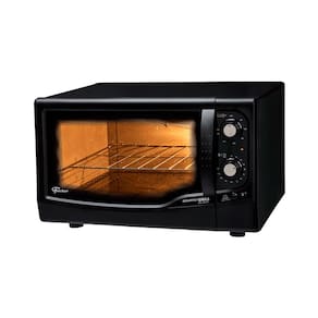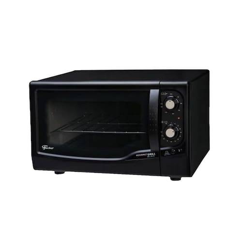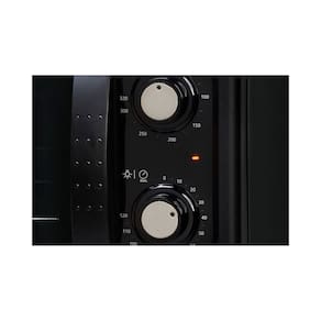 Forno elétrico de bancada com controle de temperatura automático de 50ºC a 320ºC, timer de até 120 minutos com aviso sonoro, dourador, lâmpada interna com proteção, luz piloto, controle independente das resistências, porta com abertura lateral, frontal em termoplástico, grade cromada removível (2 alturas), bandeja esmaltada para resíduos, corpo interno autolimpante, corpo externo pintado preto, porta com vidro duplo serigrafado, isolamento térmico e pés antiderrapantes.Forno autolimpante