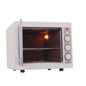 Características: Gabinete externo acabamento em aço inoxidável. Gabinete interno com revestimento easy Clean. Frontal em aço inoxidável. Termostato de precisão 50o 300oc . 04 resistências blindadas 2 sup.1200w e 2 inf 1200w . Puxador em aço inox. 02 chaves de controle da temperatura mínimo, médio e máximo . Visor iluminado de temperatura. Porta removível de vidro cristal temperado. Isolamento térmico reforçado com lã de vidro. Lâmpada interna com vidro protetor. Bandeja para resíduos. 01 prateleira removível em 03 posições. Instalação elétrica certificada pelo inmetro.