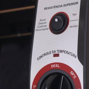 Termostato de precisão 50ºC a 300ºC; 02 Resistências blindadas (1 superior 500w e 1 inferior 800w); Dourador; Lâmpada do termostato; Isolamento térmico com lã de rocha; Prateleira removível em 2 posições.Timer