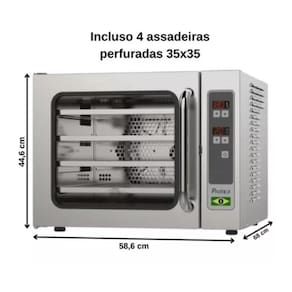 - Controle de temperatura de 0C até 210C - Convecção com circulação de ar por turbina de alta performance - Isolamento térmico de alta performance - Pés ajustáveis - Aquecimento por resistência blindada - Empilhável: máximo 1 equipamento - Possui uso eficiente de energia - Construído em aço inoxidável