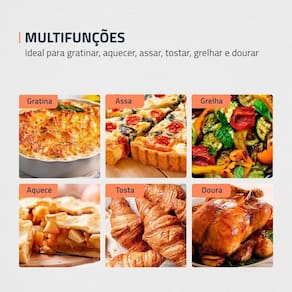 MULTIFUNÇÕES: Ideal para aquecer, cozinhar, tostar, assar, gratinar e grelhar de maneira rápida e eficiente.