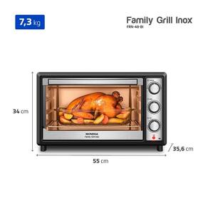 O Forno Elétrico Mondial Family Grill FRN-48-BI oferece amplo espaço interno e alta performance para o preparo de receitas do dia a dia ou refeições completas para toda a família. Com capacidade de 48 litros, permite assar pratos grandes ou preparar diferentes alimentos simultaneamente com praticidade.