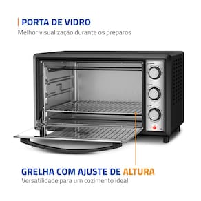 Indicado para uso residencial, ideal para famílias que buscam um forno elétrico espaçoso, versátil e eficiente para preparar carnes, massas, bolos, gratinados e diversos tipos de receitas.