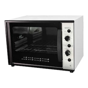 Forno de bancada com espeto giratório, timer de 120 minutos, controle de temperatura até 300°C, dourador, interior esmaltado Easy Clean, bandeja e grade removíveis.Timer