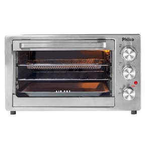 Forno elétrico pfe40i air fry philco 2 em 1 40l 110v O forno elétrico philco pfe40i air fry facilita o seu dia a dia na cozinha. Ele torna prático o preparo de todas as suas receitas Isso porque ele é 2 em 1: pode ser usado tanto como forno elétrico quanto air fry. Na função air fry, você pode preparar receitas livres de óleo e sem gordura. Com capacidade para 40 litros, ele possui 4 resistências, na parte inferior e superior, proporcionando a você temperaturas de 100 a 230ºc. Seu revestimento interno é esmaltado, resultando em uma limpeza prática e rápida. O forno elétrico philco pfe40i tem capacidade de 40 litros, sendo compacto por fora e espaçoso por dentro. Características: - forno com função air fry - interior esmaltado - seletor de temperatura de 100 a 230c - timer de 60 min - seleção de resistências - luz indicadora de funcionamento - luz interna Dados técnicos: - voltagem: 110v - potência: 1600w - consumo: 1,6 kw/h - capacidade do produto: 40 litros - material: aço inox - medidas (lxaxc): 51x30,9x42,3 cm - peso: 6,73 kg - garantia: 12 meses Conteúdo da embalagem: - forno elétrico philco pfe40i - cesto para fritura - assadeira coletora de resíduos - grelha deslizante - pegador - manual de instruções Aqui você está em 1º lugar