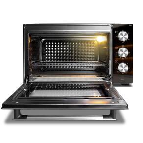Não se trata de um produto em INOX. Porta e painel espelhados Temperatura máxima 250 graus Revestimento interno autolimpante Timer de até 120 minutos Porta com vidro duplo Coletor de migalhas pintado Seletor de resistências com 4 modos: inferior, superior, inferior + superior e desligado Grelha com ajuste de altura
