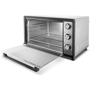 Forno Elétrico Philco com capacidade de 65 litros, potência de 2000W, timer de 120 minutos, seletor de temperatura de 90°C a 230°C e grelha deslizante em inox.Timer