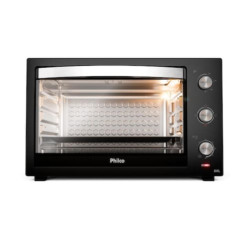 Forno elétrico de bancada com 4 resistências (2 superior e 2 inferior), 4 funções (Somente resistência inferior, somente resistência superior, ambas acionadas), temperatura ajustável de 100°C a 250°C, timer de 90 minutos com desligamento automático, grelha em aço cromado com 5 níveis de ajuste de altura, bandeja coletora, revestimento interno esmaltado e porta de vidro.Forno autolimpante