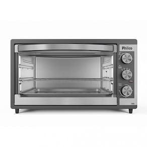 Prepare deliciosas receitas com o Forno Elétrico Philco PFE52P de 50L. Ele aquece, assa, tosta, doura, gratina e grelha, deixando seus alimentos crocantes com a função dourar. A grelha de inox, com 3 ajustes de altura, facilita o preparo de suas refeições. O forno possui um timer de 60 minutos com desligamento automático e um sinal sonoro que avisa quando o alimento está pronto. A porta de vidro temperado permite acompanhar o preparo. Com resistências superior e inferior e controle individual, garante que seus pratos não queimem nem fiquem crus. Perfeito para maior controle no preparo dos seus alimentos.