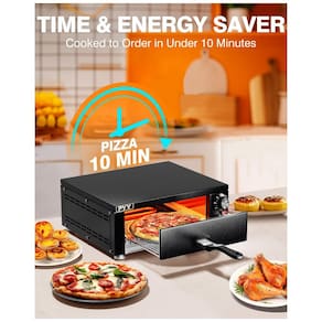 Forno elétrico profissional para pizza com temporizador, aço inoxidável, 110V, 1100W. Aquecimento uniforme superior e inferior. Isolamento térmico para economia de tempo. Fácil de limpar com pintura texturizada e bandeja removível. Temperatura ajustável de 0 a 300°C. Timer com alarme. Assa pizzas de até 30 cm, pães, bolos, tortas, massas e outros alimentos. Ideal para estabelecimentos comerciais.Forno autolimpante