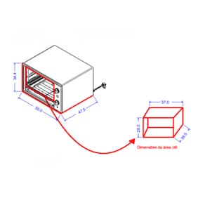 Design Exclusivo, Luz Piloto, Opção Grill/Dourador, Termostato Ajustável até 300°C, Bandeja para Resíduos, Pés Antiderrapantes, Timer de até 120 minutos, Acompanha Grade, Luz Interna, 2 níveis de altura da grade.Forno autolimpante