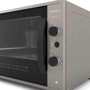 Forno elétrico de bancada Nardelli Top60 com capacidade de 60 litros, timer de 120 minutos, controle automático de temperatura até 300°C, dourador, interior Easy Clean, isolamento térmico e pés antiderrapantes.Forno autolimpante