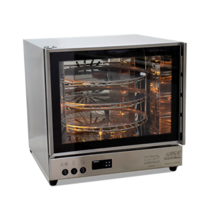 Seu sistema turbo ligado ao sistema giratório permite assar uniformemente os produtos, além de valorizar sua exposição.