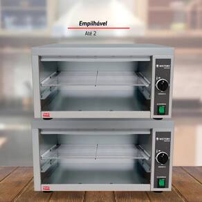 Características Técnicas: Painel intuitivo Rápido aquecimento e excelente retomada de temperatura Alta durabilidade: construído em aço inoxidável Instalação rápida e simplificada Equipamento portátil Potência 1750w Equipamento em aço inoxidável AISI 430 Regulagem da temperatura de 0 300 Projeto reduzido para otimizar o espaço da cozinha Sistema de convecção estática que permite a estabilidade da temperatura Suporte para pratos removível com fácil desmontagem para higienização Uma resistência localizada na parte superior da câmara para aquecer ou gratinar os alimentos Volume útil da câmara (AxLxP): 20x45X42cm Empilhamento até 2 Forno de bancada Quantidade de prateleiras: 1