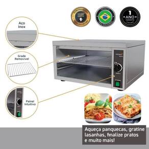 O forno salamandra elétrico é um equipamento utilizado para gratinar, dourar, manter aquecido e finalizar pratos. Ele não é um forno comum sua função principal é aplicar calor intenso e rápido na parte superior dos alimentos. A salamandra elétrica é um equipamento muito utilizado em cozinhas profissionais e serve para gratinar alimentos, como queijo sobre massas, lasanhas ou escondidinhos; dourar superfícies, finalizando carnes ou peixes já cozidos e dando crocância por cima; aquecer pratos rapidamente, mantendo a temperatura ideal antes de servir; e tostar ou finalizar preparos, como pães ou hambúrgueres com queijo. Entre suas principais vantagens estão o rápido aquecimento geralmente por meio de resistência elétrica superior , a praticidade na finalização dos pratos e o controle preciso de temperatura e tempo.