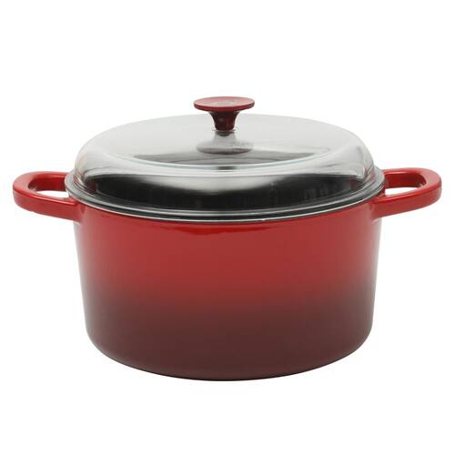 Forno holandês de ferro fundido redondo de 7 litros com tampa de borasilicato - vermelho