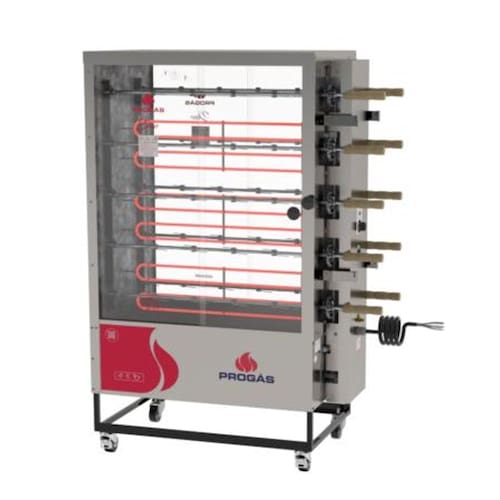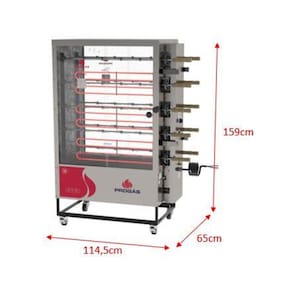 - Capacidade é de 5 frangos de até 2 Kg por espeto.