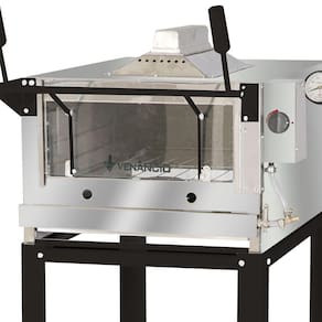 Esse Forno conta com estrutura em aço inox, super queimadores e sistema de abertura de portas do tipo guilhotina com acabamento em pintura a pós eletrostática com base fosfatizada. Seu revestimento interno é feito em aço galvanizado com lã de rocha que permite um aquecimento uniforme sem deixar o forno resfriar sendo indicado para uso industrial e profissional.