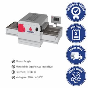 - O Forno Esteira Progás PRFE-500 é a escolha ideal para pizzarias que precisam de eficiência e padronização.