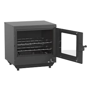 -Tipo: Forno Industrial de Bancada -Capacidade: 77 Litros -Alimentação: Gás GLP (baixa pressão) -Ignição: Manual -Entrada de gás: Lado direito (olhando de frente) -Ajuste de temperatura: 5 posições -Prateleiras: 2 reguláveis -Revestimento interno: Easy Clean (esmaltado) -Isolamento térmico: Lã de vidro -Porta: Aço com visor e sistema de tranca -Puxador: Aço -Potência do queimador: 4,50 kW -Termômetro: Não possui -Pedra refratária: Não acompanha -Base: Não inclusa -Cor: Preto