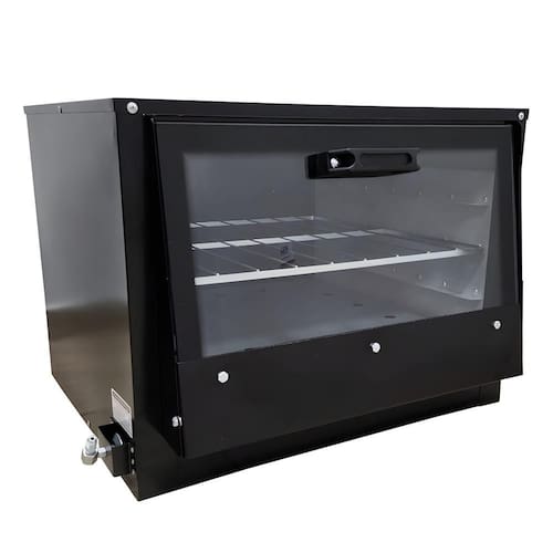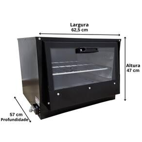 característica técnica: Modelo: FRG-12 Capacidade: 80 litros Funcionamento: Gás GLP Baixa pressão Estrutura: Aço carbono com pintura eletrostática a pó Espessura da chapa: 0,9 mm (Chapa 20) Tubo de alimentação de gás: 1" Grelha: 1 unidade de ferro fundido (30x30 cm) Registro regulador: Palito Durata Consumo de gás: 0,175 kg/h (queimador simples) Tampa: Vidro temperado Totalmente desmontável para facilitar transporte e armazenamento