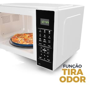 -Capacidade de 33 litros, ideal para famílias. -Prato giratório com 315mm para aquecimento uniforme. -Funções práticas: descongelar por tempo ou peso, reaquecer, timer e relógio. -Função tira odor para manter o interior limpo. -Potência de 1400W para preparo rápido. -Classe A em eficiência energética. -Display digital para fácil visualização. -Design moderno na cor preta. -Disponível em 127V e 220V. -Selo Procel de economia.Função Grill