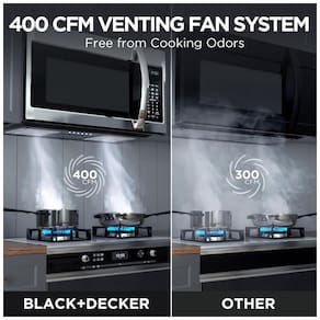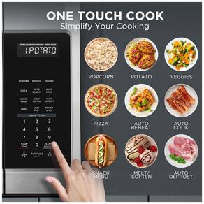 Agora você pode ter mais praticidade e estilo na sua cozinha com o Forno Micro-ondas Over The Range BLACK+DECKER EM044KB19. Com capacidade de 53,80 litros e 1000 watts de potência, este micro-ondas conta com 10 níveis de potência, sistema de ventilação de dois velocidades com 400 CFM e prato giratório de 34,29 cm. O recurso de cozimento com um toque ajusta automaticamente a potência e o tempo para diferentes alimentos, como pipoca, batata, vegetais, pizza, petiscos, bacon, jantar congelado, arroz e café da manhã congelado. Além disso, vem com uma prateleira para cozimento/reaquecimento em dois níveis. As opções pré-programadas para diversos alimentos facilitam o preparo das suas refeições diárias. Com iluminação LED no cooktop, oferece uma visão clara e brilhante das suas refeições. O sistema de ventilação de duas velocidades garante um ambiente mais limpo e livre de odores. Com a função de ligar/desligar o prato giratório, você pode preparar pratos maiores com facilidade. Tudo isso em um design elegante de aço inoxidável. Dimensões externas: 39,88 cm x 74,93 cm x 41,66 cm (L x P x A), Dimensões internas: 50,39 cm x 35,05 cm x 23,09 cm (L x P x A), Diâmetro do prato giratório: 34,29 cm.
