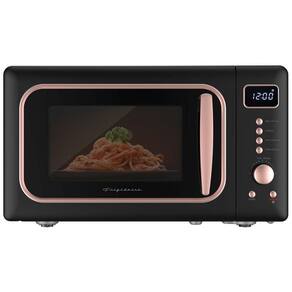 Forno micro-ondas retrô de bancada com capacidade de 20 litros, potência de 900W e 5 níveis de potência. Possui timer digital, funções de cozimento expresso e programas de descongelamento. Estrutura em metal pintado com interior em esmalte cerâmico. Acabamento preto com detalhes em rosa. Alimentação elétrica 110V.Função Grill