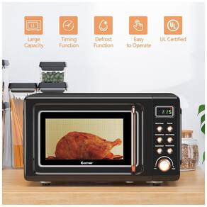 O micro-ondas retrô de bancada COSTWAY é um modelo compacto com capacidade aproximada de 20 litros, indicado para uso residencial em cozinhas, estúdios e pequenos apartamentos. Possui potência de 700W e cavidade interna equipada com prato giratório de vidro, que gira em 360° para distribuir o aquecimento de forma mais uniforme sobre os alimentos.?
