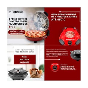 Forno pizza labravia davvero pedra refratária grafite 110v Contém: 1 forno de pizza elétrico 110v 1 espatula de aço inox de 28 cm