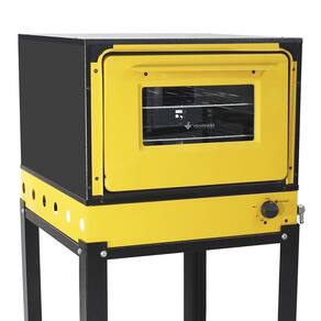 O Forno Profissional Bravo Amarelo conta com sistema de gás GLP e registro regulador de gás com 5 posições com consumo de gás de 0,380kg/h.