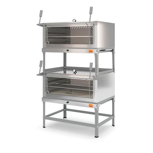 - 6 queimadores para cada forno com sistema de gaveta, em aço tubular de chama dupla;
