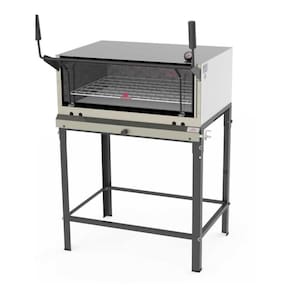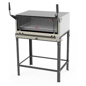 - Estrutura externa em aço inox; - Cavalete desmontável; - Placas refratárias; - Visor em vidro temperado; - Termômetro marcador de temperatura; - Porta tipo guilhotina; - Câmara interna com suportes para 2 níveis de altura; - Grade 79,5 cm x 57 cm; - Modelo a gás em baixa pressão e gaveta móvel; - Consumo: 0,58 kg/h.