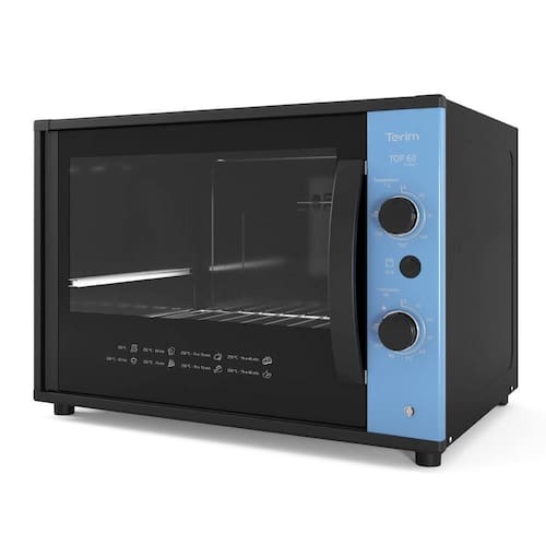 Forno elétrico de bancada com design diferenciado e interior Easy Clean. Controle de temperatura ajustável até 300 graus e timer de até 120 minutos. Possui opção de Grill, luz interna, grade e bandeja removíveis.Forno autolimpante