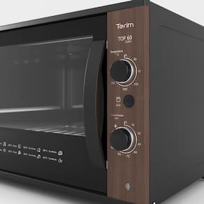 Quando o assunto é praticidade e inovação, nós temos a solução. Lançamento Forno Elétrico Terim TOP 60 Collor Madeirado Canela. O modelo incorpora um design diferenciado, com painel em 6 opções de cores vibrantes: Vermelho Marsala, Laranja Damasco, Azul Anis, Amarelo Curry e nas opções madeirado Canela ou Jatobá! Além do design diferenciado a limpeza ficou muito mais rápida e fácil com o seu interior Easy Clean. Sem contar na economia por não necessitar do uso de produtos abrasivos. O controle ideal de temperatura pode ser ajustado em até 300 graus e o timer em até 120 min. Para melhor acompanhamento do preparo este produto também conta com opção de Grill e Luz interna. Facilitamos o manuseio em colocar ou retirar recipientes no interior do forno com a grade e a bandeja removíveis. Terim, tornando sua vida mais prática!