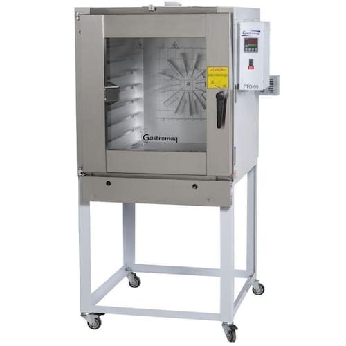 Forno Turbo á Gas 8 Assadeiras Ftg8 Gastromaq Forno Epóxi 220v Forno Turbo a Gás 8 Esteiras com Pedestal FTG8 Gastromaq. Ideal para panificadoras, supermercados e similares. Indicado para assar pão francês 50g. Controlador digital com aviso sonoro que programa tempo, vapor e temperatura. Isolamento em lã de rocha de 50mm. Sistema de vedação da porta em silicone, vedando diretamente no vidro. Acabamento externo em pintura epóxi e acabamento frontal em inox escovado. Rodízios para deslocamento com trava. Regulagem do porta-esteira para 58x70 e 45x65. CAPACIDADE: 8 esteiras. CONSUMO MONOFÁSICO: 1kW/h. CONSUMO DE GÁS: 1,3 kg/h. MOTOR: 3/4Cv. POTÊNCIA: 1,1kw. PRODUÇÃO: 240 pães 50g. TEMPERATURA MÁXIMA: 250C. PESO: 139kg. DIMENSÕES(CxAxL): 95,5x172,5x129,5cm. Equipamento certificado pelo OCP 0070 conforme Portaria INMETRO - 267/2021. Forno Turbo a Gás 8 Esteiras com Pedestal FTG8 Gastromaq é na Atau. Marca - Gastromaq Modelo - FTG8 Capacidade - 8 esteiras Frente - 95,5cm Altura - 172,5cm Profundidade - 129,5cm Peso - 139kg Motor - 3/4Cv Consumo - 1kW/h
