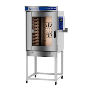 O Forno Turbo a Gás Gastromaq Epóxi 10 Esteiras Acabamento Frontal Inox 220V FTG 10 é ideal para assar pão francês e similares. Este forno tem uma capacidade de produção de 300 pães de 50g e um tempo médio de cozimento de 15 a 18 minutos. Possui um indicador de temperatura e tempo digital com aviso sonoro que programa tempo, vapor e temperatura. Além disso, possui uma válvula para água da vaporização instalada e um botão de vapor com acionamento digital.