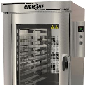 O Forno Turbo A Gás Venâncio Ciclone 10 Esteiras é um equipamento robusto e eficiente, perfeito para padarias, pizzarias, restaurantes e confeitarias que buscam máxima produtividade. Com seu interior e exterior totalmente em aço inoxidável, ele garante máxima durabilidade, higiene e fácil limpeza, ideal para ambientes de uso intensivo.Este forno turbo a gás é ideal para assar pães, bolos, pizzas, biscoitos e outros alimentos, distribuindo o calor de forma uniforme graças ao sistema de inversão do ventilador a cada 3 minutos. Suas 10 esteiras ajustáveis permitem trabalhar com diferentes tamanhos de assadeiras (60x80, 58x70, 45x65 e 40x60), oferecendo a maior capacidade produtiva da linha.